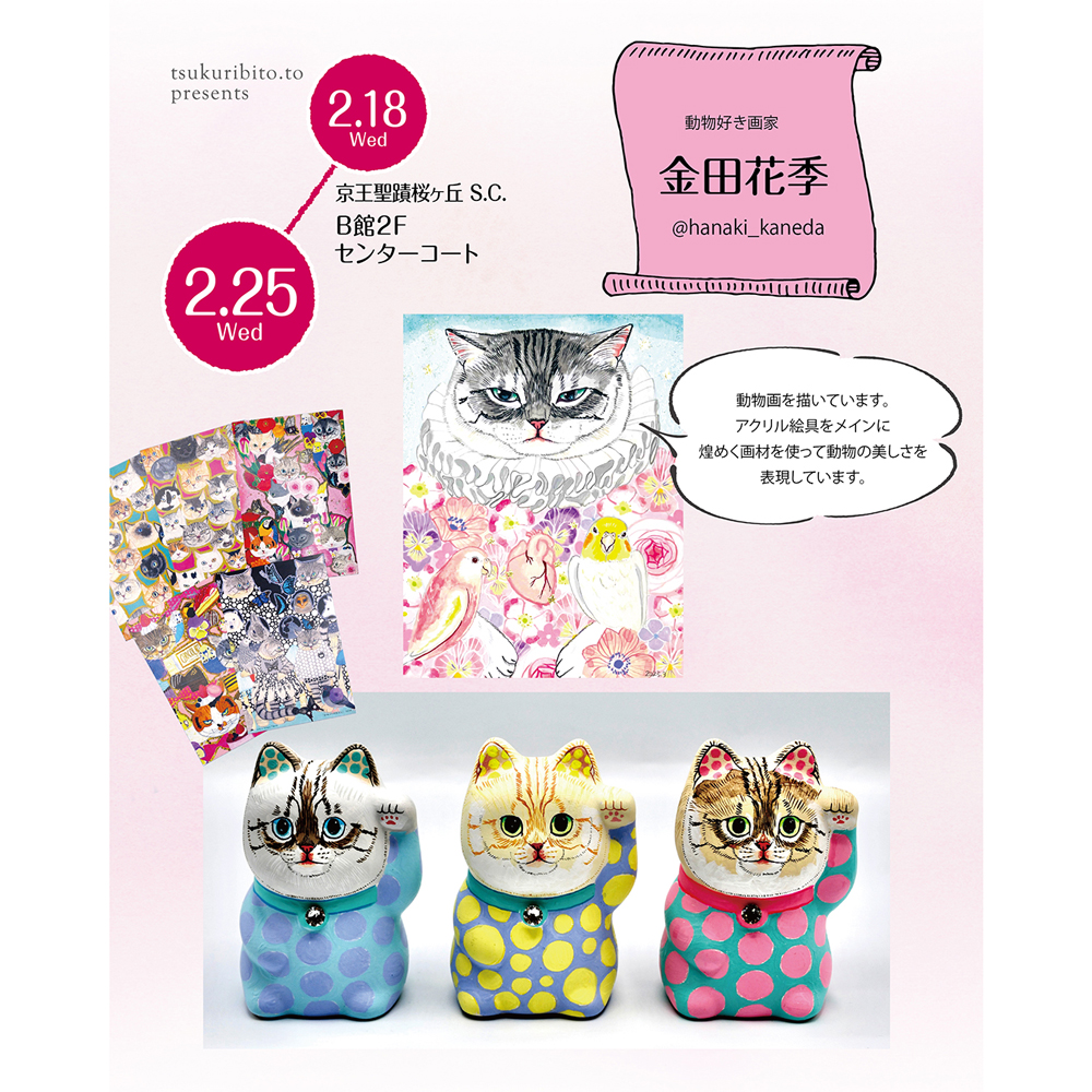 第2部は京王アートマン初登場の作家さん、猫もとろけるあんま棒と台湾雑貨の「SANN」さん、動物画家「金田花季」さん、メキシコを愛するイラストレーター「fumikoten」さんが加わります!