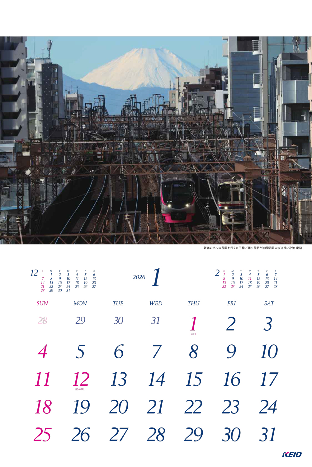 2026年版は京王線・井の頭線フォトコンテスト「わたしの見つけた沿線風景」をテーマに写真を一般公募し、2,432点もの応募の中から厳選された12作品を掲載しています。